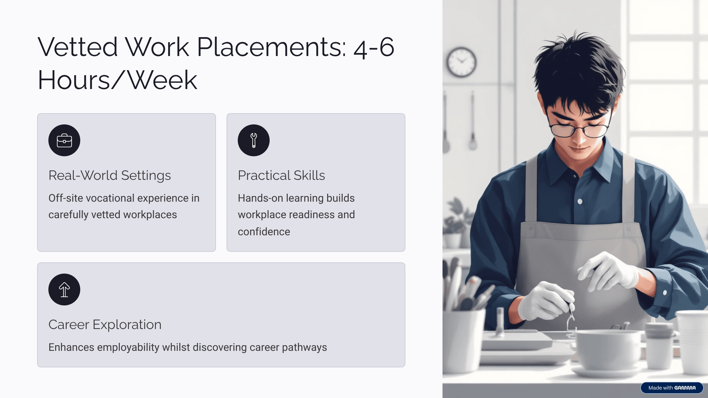 Yes! Our "Earn & Learn" pillar is designed to build real-world seniority. We vet local businesses—from tech firms to trades—to provide mentored work placements. Your child won't just be "watching"; they will be learning professional skills and, in many cases, moving into legal, part-time paid role. Q: Who is responsible for the building and safety?
